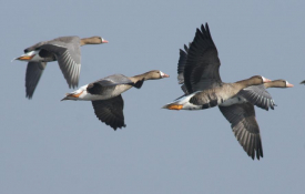Waarvan telden we meer? Grauwe Ganzen of Kolganzen? Opvallende waarnemingen: Grauwe gans (4891): de meeste ditmaal in de Geer en Buurtpolder t.w. 934 vogels en 580 in Woubrugge Kerkweg. Kolgans (6487): er zaten maar liefst 1830 exemplaren in de Lagenwaard, 1774 in De Wilck en 1134 in de Oostbroekpolder. Toendrarietgans: 41 vogels in de Gnephoek. Er werd door de tellers getwijfeld aan eventueel taigarietgans, maar deze is zo zeldzaam in ons land, dat ik er toch toendra van heb gemaakt. Grote Canadese gans (402): de meeste t.w. 132 stuks in de Westbroekpolder. Ook 45 van deze soort in de Boterpolder. Kleine rietgans: 1 in de polder Achthoven en 2 in de Lagenwaard. Kleine zwaan: daar zijn ze dan. 30 stuks in de Hondsdijk. Nijlgans (612): hiervan maar liefst 145 in de Hondsdijkse Polder, 68 in de Vlietpolder, 65 in de Geer en Buurtpolder en 64 in de Gnephoek. Bergeend (50): er werden er 12 in de Hondsdijk geteld en 11 in de Oostbroekpolder. Krakeend (1136): 220 in de Riethoornse polder, 173 in de Gemenewegse polder, 111 in de Oostbroekpolder en 102 in de Barrepolder. Wintertaling (74): waarvan 34 in polder Achthoven Smient (9032): 4890 in De Wilck en 966 in de Grote Polder. Dodaars: 3 dreven er op de Zegerplas. Grote zilverreiger (111): waarvan 18 vogels gezien in de Lagenwaard. Ooievaar: 1 in polder Achthoven en 1 in de Geer en Buurt polder Goudplevier (60): 15 vogels in de Vlietpolder en 45 in De Wilck. Kievit (2365): 1364 in De Wilck. Watersnip: 1 vogel in De Wilck. Wulp (1016): de meeste in de Hondsdijk (330 vogels), en verder behoorlijke aantallen in de Vlietpolder, De Wilck en de Groenendijkse polder met respectievelijk 216, 151 en 117 exemplaren. Stormmeeuw (3715): de meeste in de Gnephoek t.w. 859 stuks. En verder: Fazant (58): een all time high in de polder Achthoven, t.w. 43 stuks. Grote gele kwikstaart: 1 vogel in De Wilck Cetti’s zanger: 3 stuks langs de Wijde Aa. Graspieper (73): vrijwel allemaal in de Gnephoek t.w. 70 stuks. Veldleeuwerik: 6 in De Wilck, 1 in de Gnephoek en 1 in de Hondsdijk. IJsvogel: 1 gekleurde jongen of meisje in de Barrepolder, 1 in de Vlietpolder en 1 in de HW Droogmakerij. Slechtvalk: 1 snelle vogel in de Lagenwaard. Sperwer: 1 in de Gnephoek, 1 in de Barrepolder en 1 in de Oostbroekpolder. Blauwe kiekendief: 1 x in De Wilck Havik: 1 x bij de Wijde Aa. Nader bekeken Het is wel eens aardig om tellingen van dezelfde maand (in dit geval januari) voor verschillende soorten naast elkaar te leggen. Dus "aantallen gemiddeld in januari over 10 seizoenen gemeten" De Grauwe Gans: Gemiddeld 3025 vogels De Kolgans: Gemiddeld 4280 vogels, sterk flucturend De Nijlgans laat in aantallen een behoorlijk stabiel beeld zien, met uitzondering van de laatste januari telling. Gebruikelijk zaten de tellingen tussen de ca 100 en 250 vogels maar in de afgelopen januarimaand waren dat er plots 612. D.w.z. 3 tot 4 x zoveel. De Goudplevier. De goudplevier laat in de januarimaand een erg negatief beeld zien, een 50 tot 100-voudige afname. Heeft dit te maken met de zachter wordende winters? Is januari de laatste jaren gemiddeld warmer geworden? Van 4000 naar minder dan 100 nu. Foto: Kolganzen - Ton Renniers