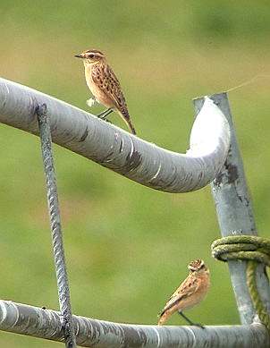 030828 Wilck - Paapje ©Adri de Groot. Twee van de drie paapjes: Drie paapjes doken vanaf hun uitkijkpost op een hek steeds naar beneden de