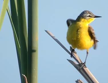 040518 Wilck - Gele kwikstaart ©Adri de Groot. Een man gele kwikstaart zich te poetsen aan de rand van de Wilckplas.