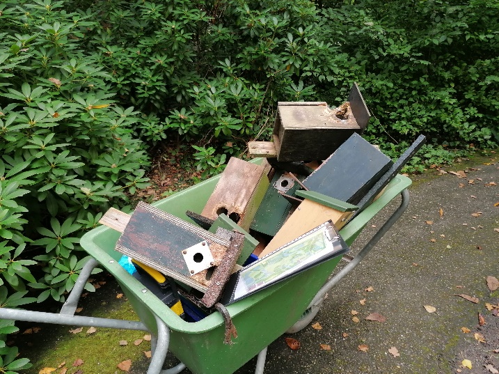 NieuwOok zijn er weer 10 kasten vervangen. Veel van deze kasten, ook degene die vorig jaar nieuw waren aangeschaft, hadden schade door de Grote Bonte Specht. Sommige van deze kasten worden (later) nog gerepareerd, zodat ze volgend jaar weer hergebruikt kunnen worden.